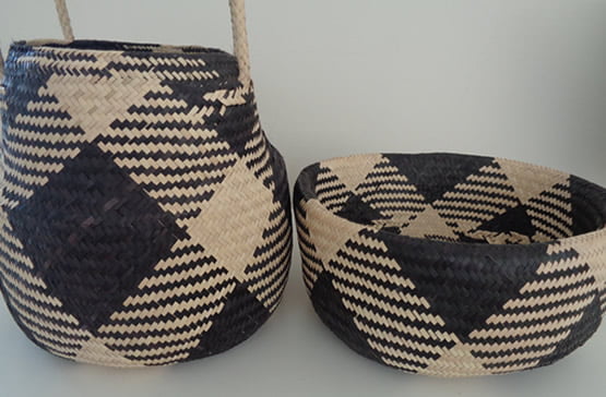 Black and Natural seagrass Belly Basket
