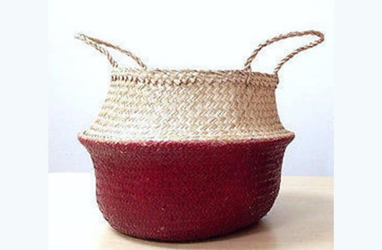 Handmade from 100% seagrass in Vietnam, this unique belly basket is hand dipped in a rare deep red/burgundy.